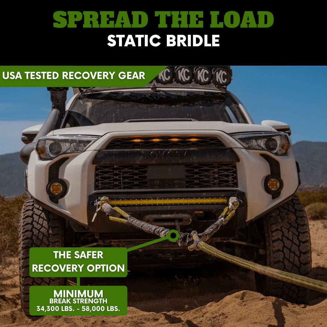 Engineered for off‑road safety and strength, the Kinetic‑X 10′ Static Bridle delivers a reliable, static attachment point designed to work seamlessly with kinetic recovery systems—perfect for snatch recoveries, angled pulls, or as a powerful extension to your existing recovery gear.