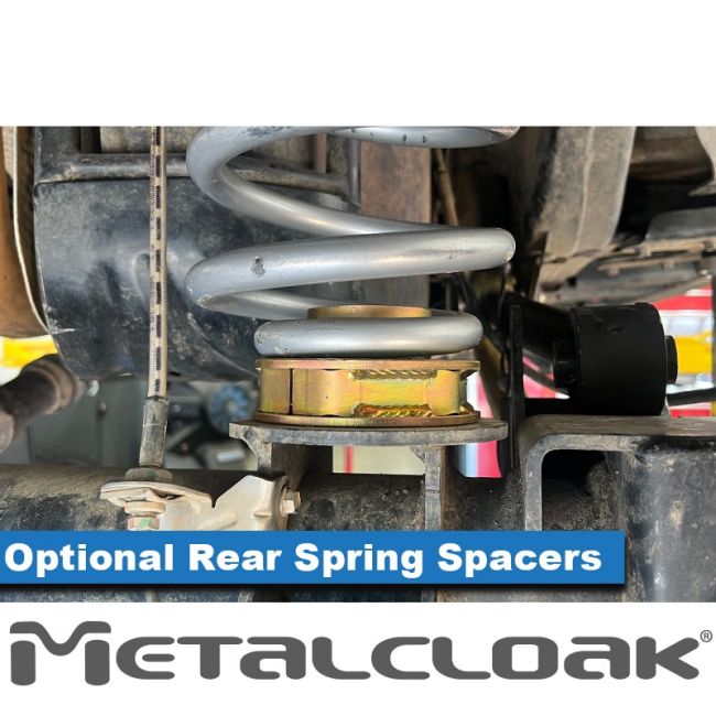If carrying heavy loads or towing we recommend adding the optional MetalCloak 1" Spring Spacers to keep the vehicle at a level stance.