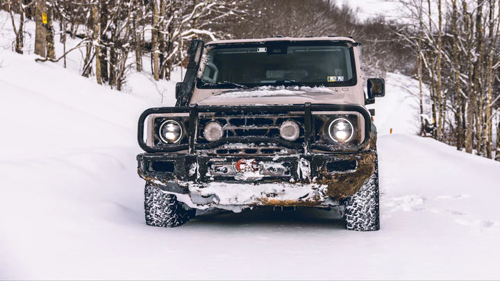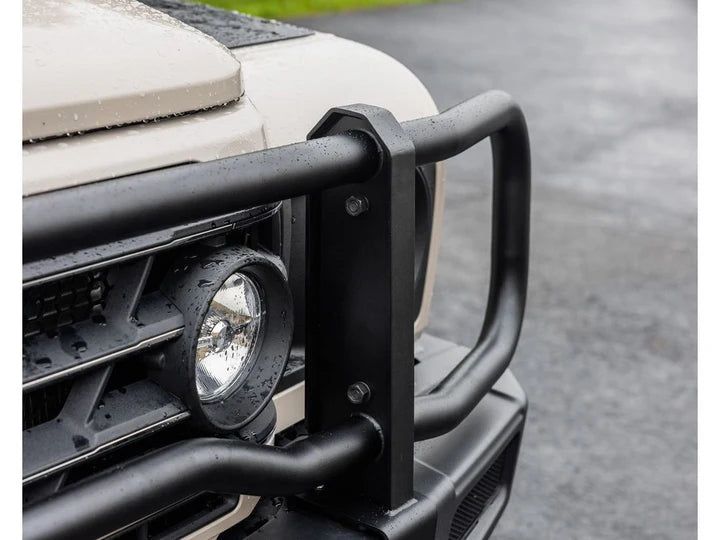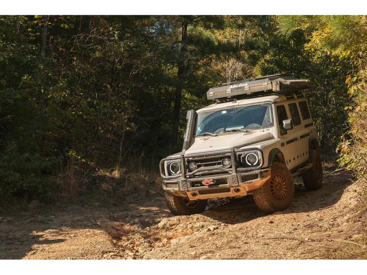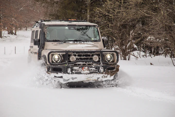 Introducing the GP Factor Ineos Grenadier Bull Bar Grill Guard. Our mission in designing this bull bar was to create a strikingly aesthetic yet robust and functional product for the Grenadier, and also fully made right here in the USA. The result is a uniquely crafted bull bar made from five separate pieces, rather than a single solid unit, allowing for enhanced versatility and ease of use. Here are some key benefits of our innovative design: