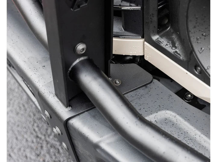 The bull bar mounts securely to the bumper using eight factory mounting holes on each side—four M10 in the front, two M6 at the top rear, and two M6 on the bottom—to ensure stability and support without any modifications required. All included hardware is crafted from A4 Marine Grade Stainless Steel with a Black Oxide Finish for superior resistance to corrosion.
