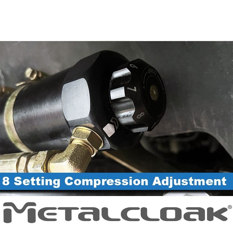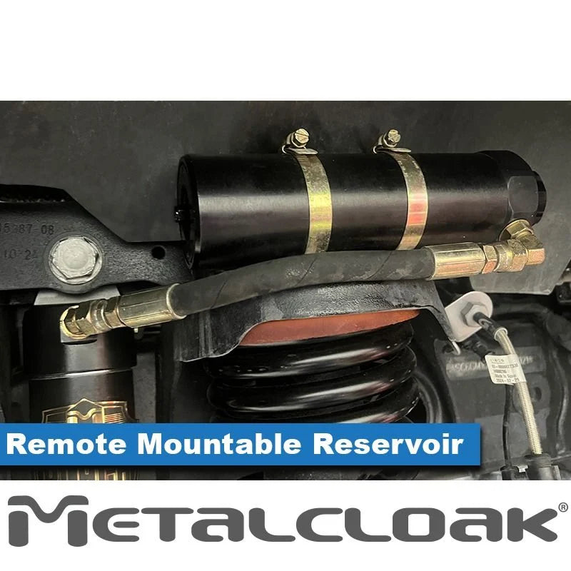 RockSport Black Reservoir Shocks are custom engineered, meticulously designed and precision manufactured in-house here at MetalCloak. These Aluminum Bodied 2.5in reservoir shocks have 8 precision compression settings that allow you to tune specifically to meet your Gold standard.