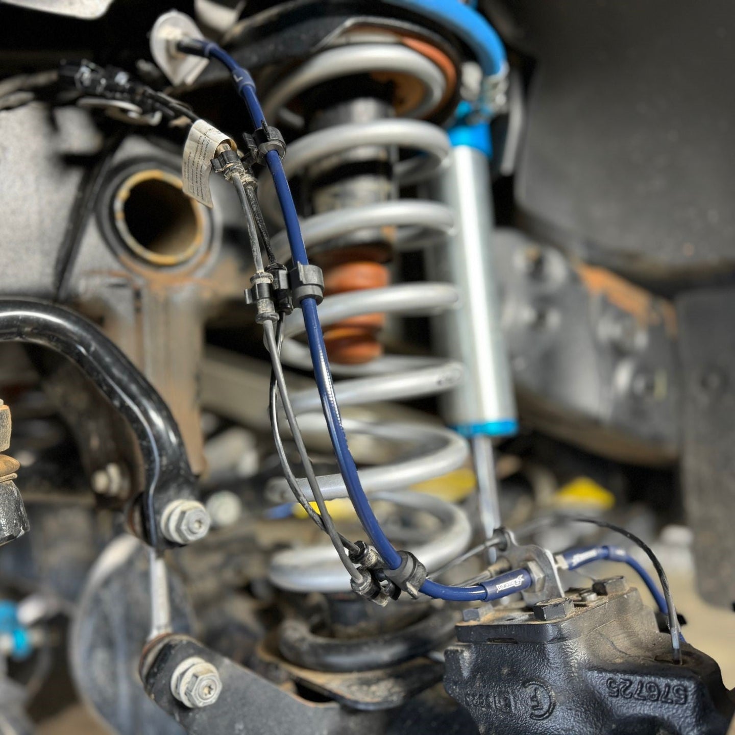 Rotora Stainless Steel Extended Brake Lines fit 23+ INEOS Grenadier OEM Brakes. Ideal for lifted vehicles. Extended to safely maximize vehicle suspension travel.