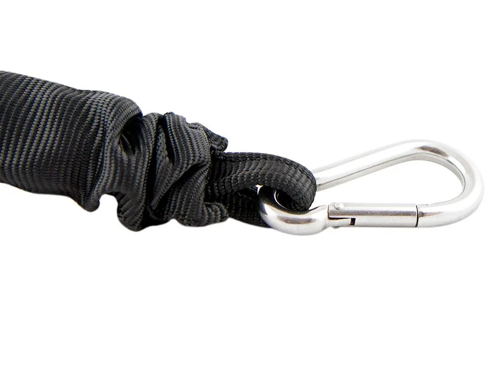 Adjustable from 22" (560mm) to 63" (1524mm) from the hook end of the carabiners. With up to an additional 8” of length when stretched.