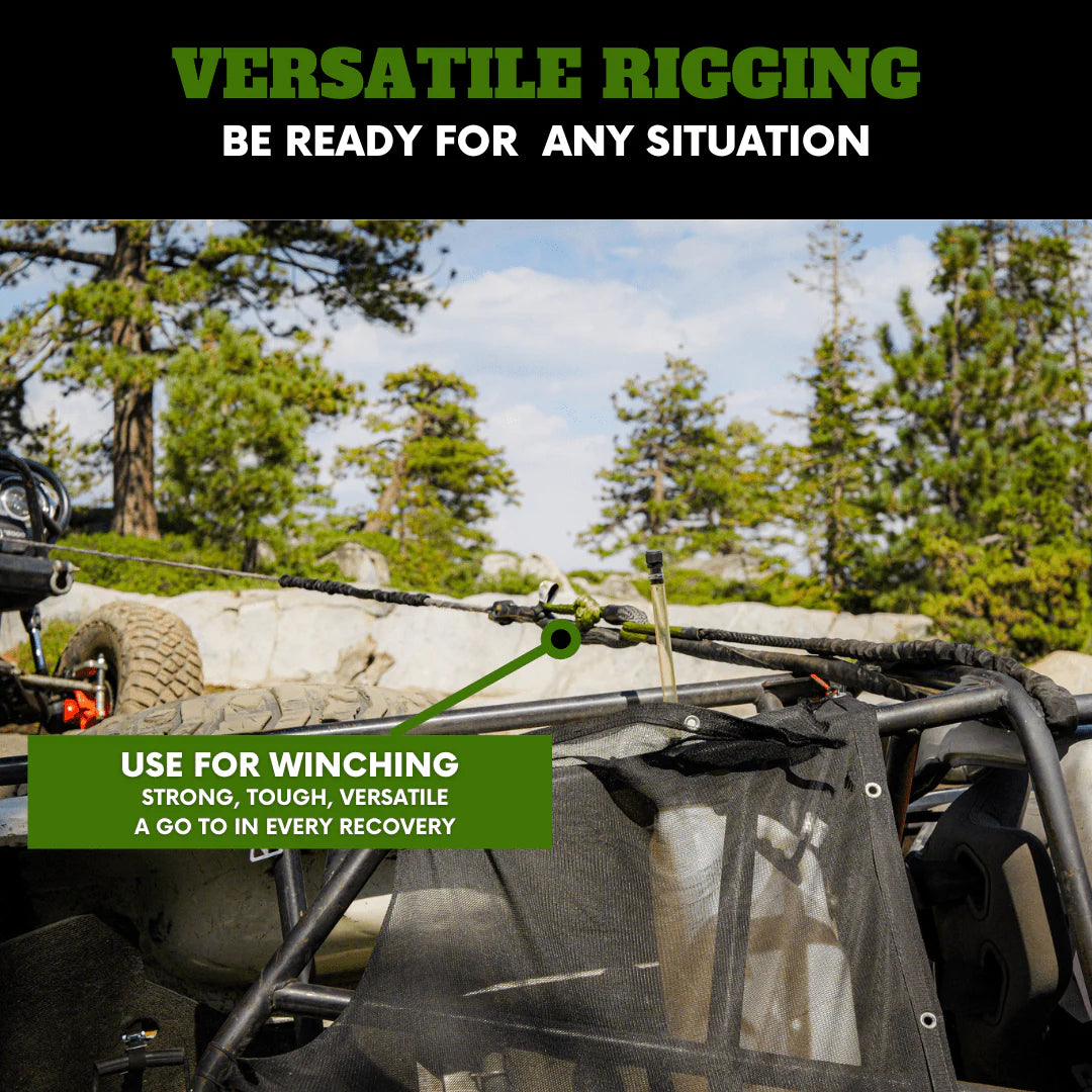 After a ton of product testing, we built the ultimate soft shackle. The shackle is lined with ultra-high-molecular-weight polyethylene made to withstand aggressive pulls against sharp metal corners. This shackle can replace your hitch receiver shackle and serve as a standard soft shackle at the same time.